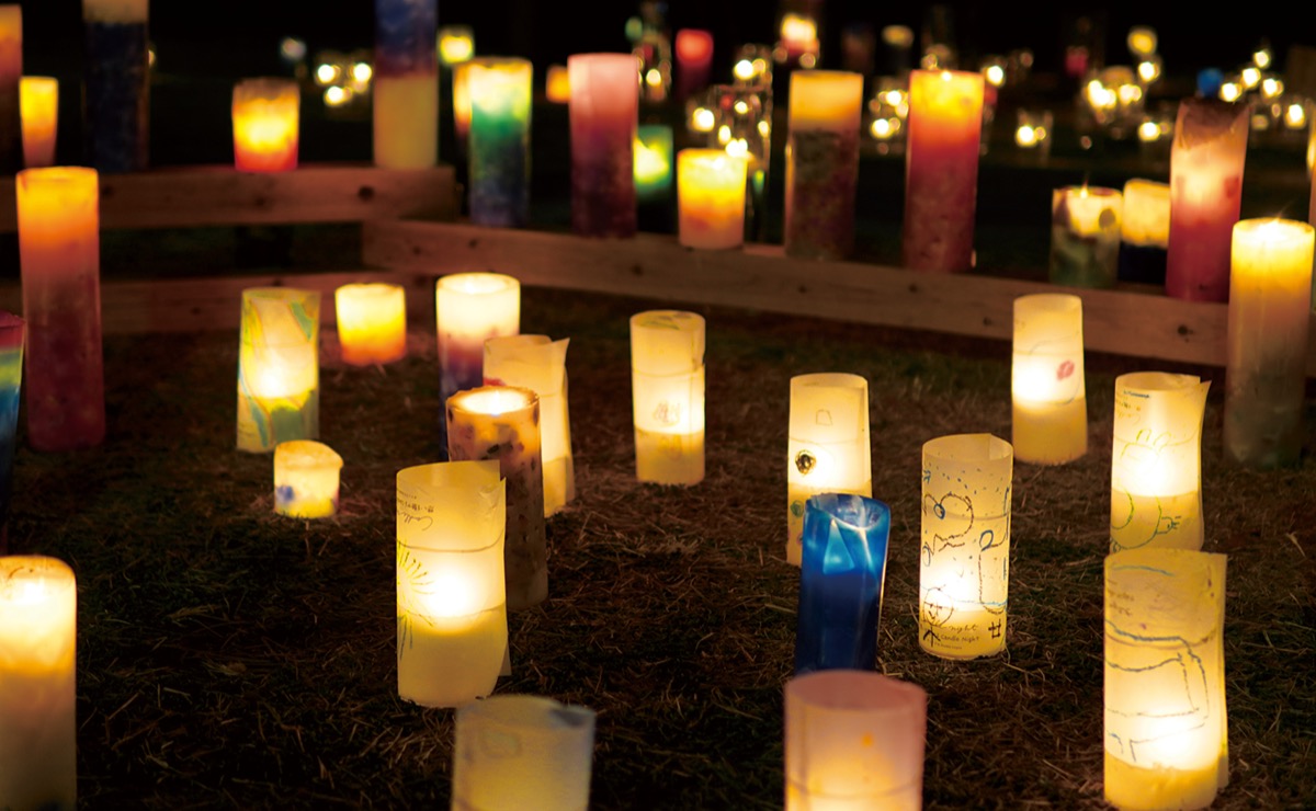 キャンドルを囲み、それぞれの思いをはせる催しが先ごろ、山崎団地商店会(山崎町)内の広場で開かれた=写真。キャンドル教室を開く「スタジオレプタ」が主催したもので、地域の老若男女が参加。子どもたちがキャンドルナイトの準備にあたる姿がみられ、ギターの弾き語りに皆が集まるなど、会場はにぎわった。