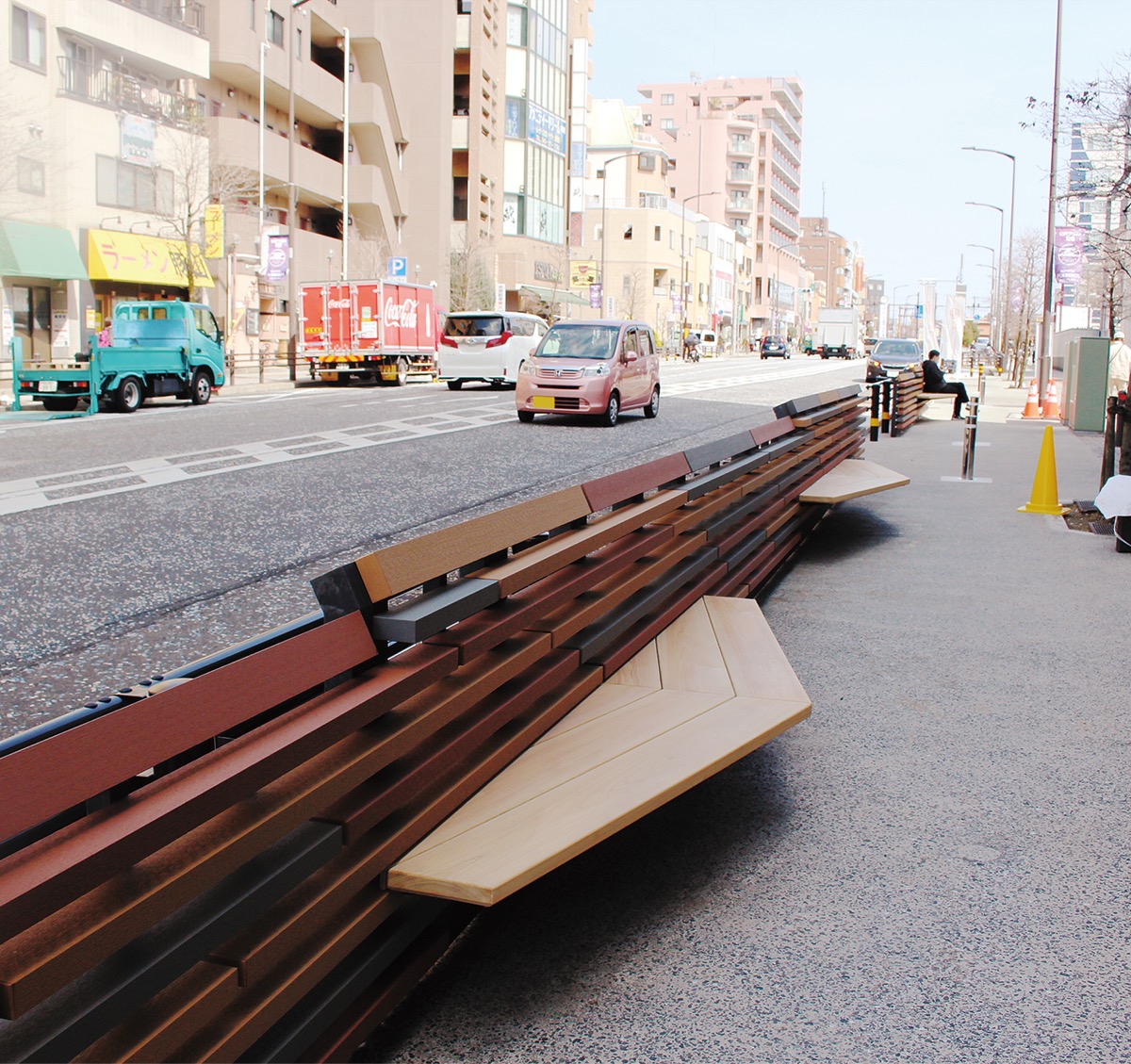 町田駅周辺の中心市街地をつなぐ原町田大通りが3月、変わる。一部分車道が減り、幅が広がった歩道にはベンチや植栽が設置され、出店やイベントの開催を予定。通り沿いには交流拠点がオープンする。事業を進める町田市の担当者は「中心市街地の賑わいや交流を創出するねらい。安心してゆっくり過ごせる空間になれば」としている。