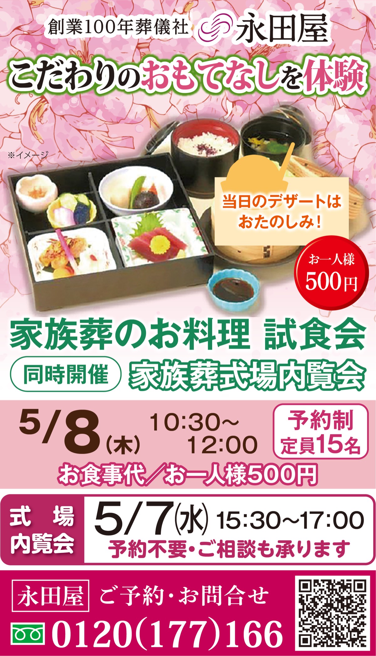 町田市で創業百十二年目の地元老舗葬儀社・永田屋は「家族葬のお料理 試食会」を5月8日(木)に小さな家族葬ハウス(R)町田木曽で開催する。