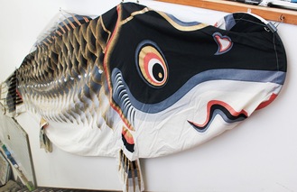 高ケ坂にある水道・ガス工事などにあたる芝田総合住設では毎年この時期になると社内にこいのぼり=写真=が登場。社員らを喜ばせている。社長の芝田晃さんが息子の成長を祈るために飾っていたものを「子どもが成人したので社内にもってきました。会社も同じように成長してほしいと思いまして」と芝田さんは話している。