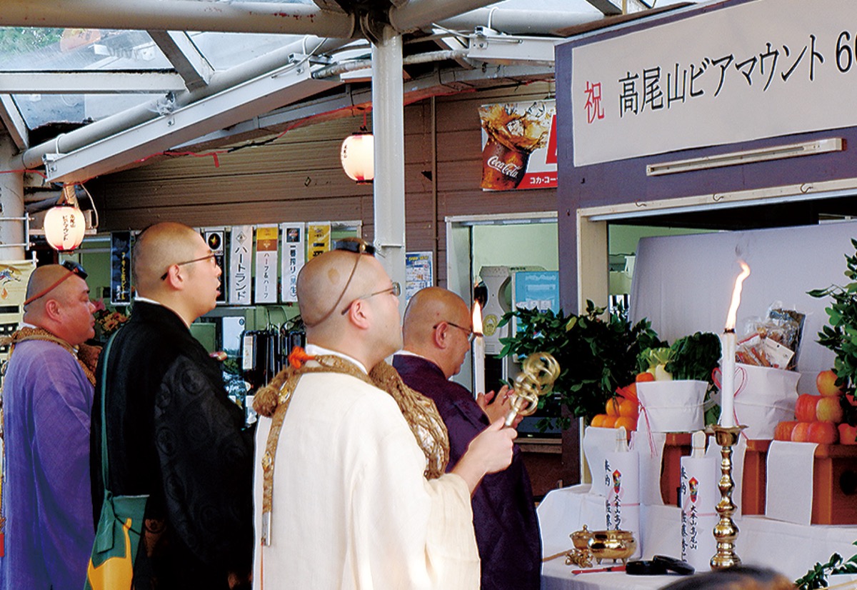 オープン前日の27日には、高尾山ビアマウント60周年を記念した式典が行われ、高尾山薬王院(佐藤秀仁貫首)による祈祷と高尾山関係者らによる鏡開きが行われた。