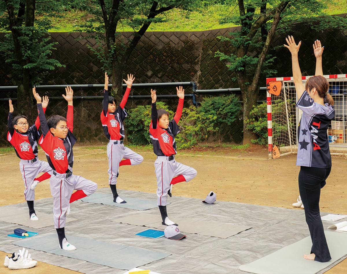 初心者や「野球エリート」ではない選手が集まる軟式野球クラブチームが真光寺中学校のグラウンドを拠点に活動している。昨年立ち上がった中学生向けクラブ「多摩スーパースターズ」だ。自主性を重んじた練習に打ち込むなか注目を集めるのが、月2回実施している「野球ヨガ」。15分間に及ぶヨガの座学と実技を組み合わせ、思考の整理や感情のコントロールといった「心の成長」を促す時間を設けているという。「練習は量より質。意識をもって取り組むことが大切」と話すのは監督を務める石塚智也さん=人物風土記で紹介=。その方針のもと、選手たちは毎回、目標を記入した「方眼ノート」を持参し、練習前に目標を宣言したうえで野球に打ち込んでいるという。