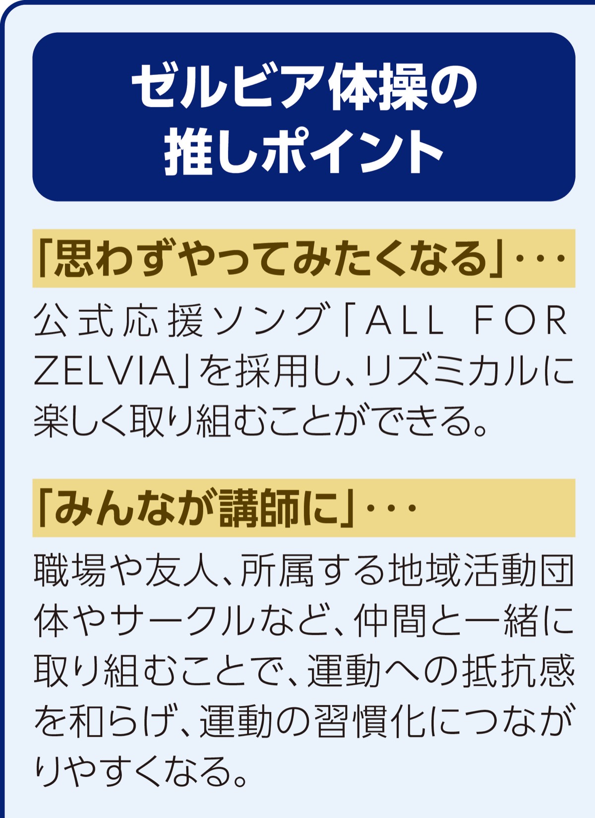 先月公開されたゼルビア体操は公式応援ソング「ALL FOR ZELVIA」のリズムに合わせ、身体を伸ばしたり、ジャンプするなどして健康づくりにつなげるもので、チームのコンディショニングトレーナーが監修に関わったという。