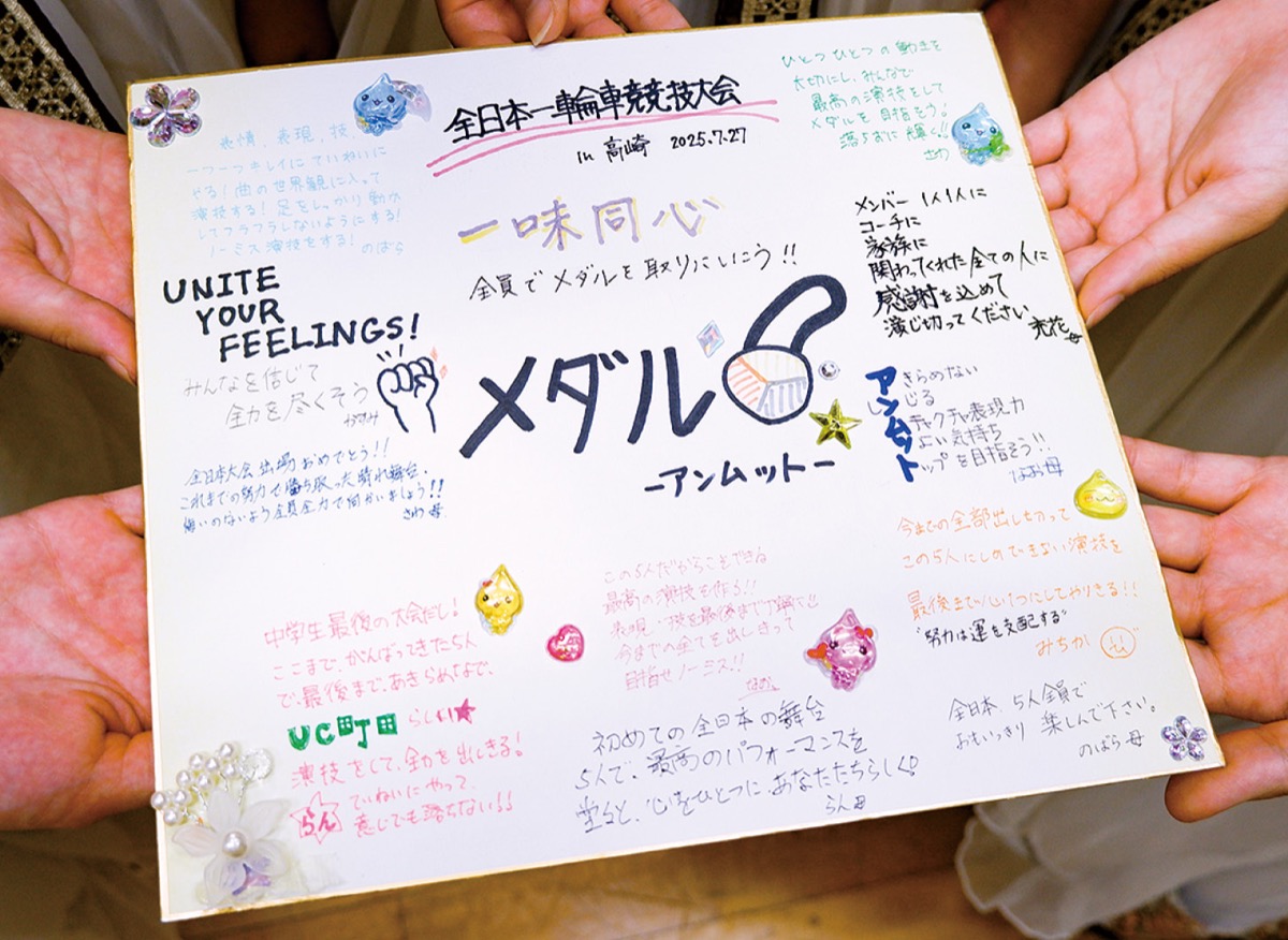 市内の一輪車クラブ・UC町田のチーム「アンムット」が先ごろ、群馬県で行われた全日本一輪車競技大会のグループクラスS(中学生以上の5・6人の部)で準優勝と好成績を収めた。会場となる体育館全体を使い切る構成力と、個々の技術力を生かした演技が評価された。