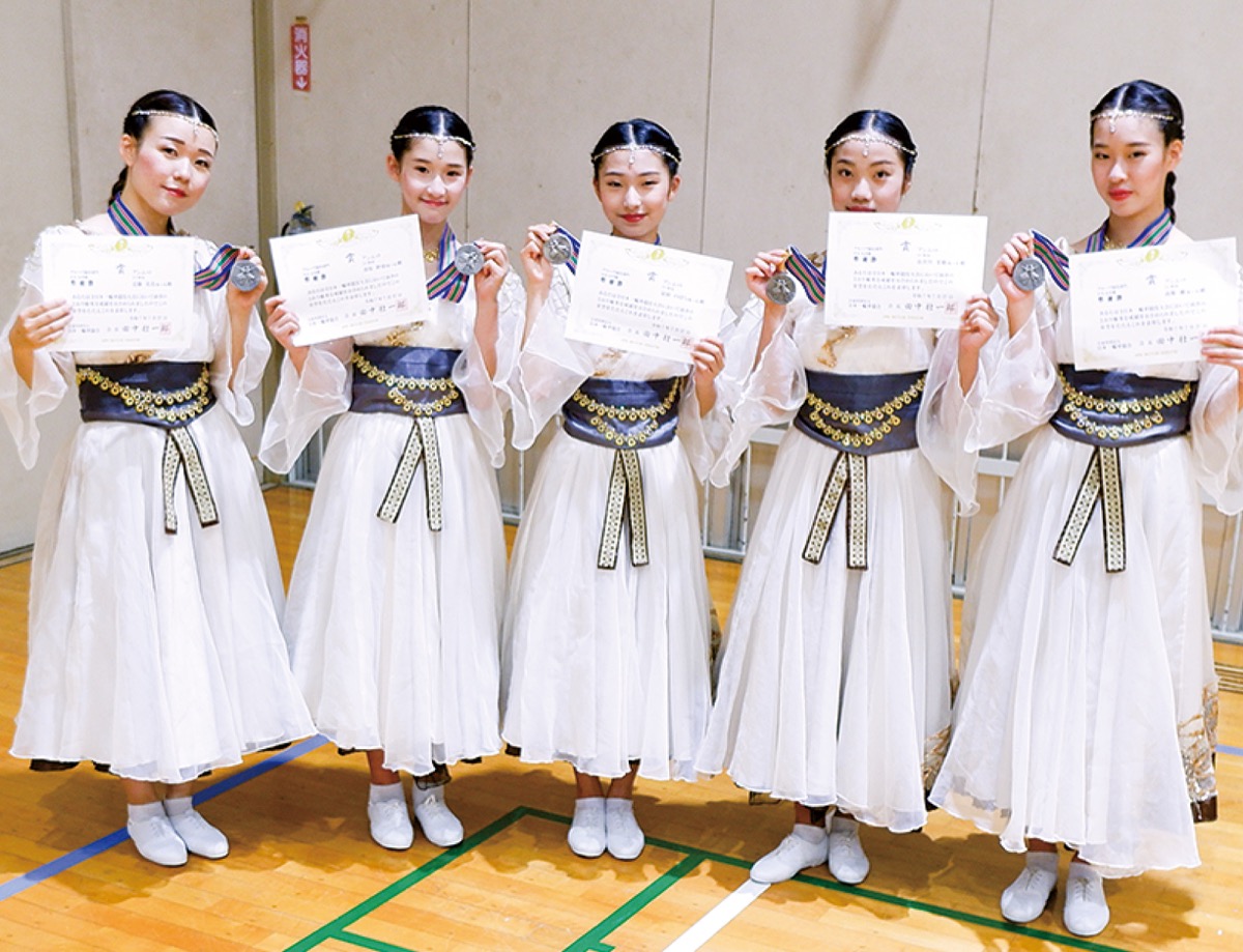 当日はメンバーの母親たちが手作りした衣装を身につけ、神話をテーマにした楽曲に合わせてパフォーマンスを披露。広い会場を大きく使う動きや、正確な技術で観客を魅了し高い評価を得た。予選で上位に入り、目標を「出場するだけ」から「メダル獲得」に切り替えてきたというアンムット。リーダーの長谷川菜穂さん(中学3年)は本番に向けて技の安定感や表現力を高めることに注力し「手の動きや表情まで細かく確認を重ね、チームとしての完成度をあげてきた」という。彦坂紗羽さん(中学3年)は「前日の練習では失敗が多く不安だったが、最後まで一丸となってがんばれた」と笑顔をみせる。チーム最年少の富岡のばらさん(中学2年)は「途中加入でついていけない時もあったが、支え合って結果に結びつけられた」と安堵の表情。高堰蘭さん(中学3年)は「全日本のレベルを肌で感じ、みんなで描いた『メダル』という目標を達成できた」と喜びを語る。