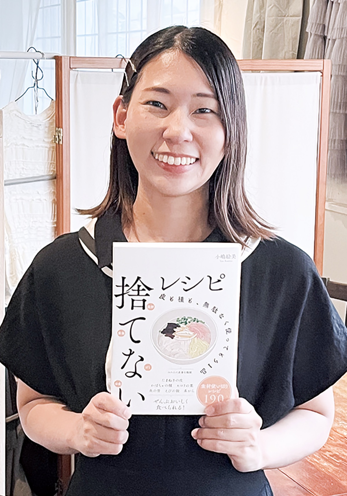 多摩地域で活動する、管理栄養士でフードライターの小嶋絵美さん=人物風土記で紹介=がこのほど、書籍『捨てないレシピ 皮も種も、無駄なく使ってもう1品』(サンクチュアリ出版)を出版した。たまねぎの皮やかぼちゃの種、セロリの葉、魚の骨などの捨てていた部分を使ったレシピが200点近く掲載され、なかにはたまねぎの皮による「たまねぎパウダー」、だいこんの皮を使った「切干大根」、アスパラガスの皮の「チーズおつまみ」、かぼちゃの種で「パンプキンシード」などが紹介されている。