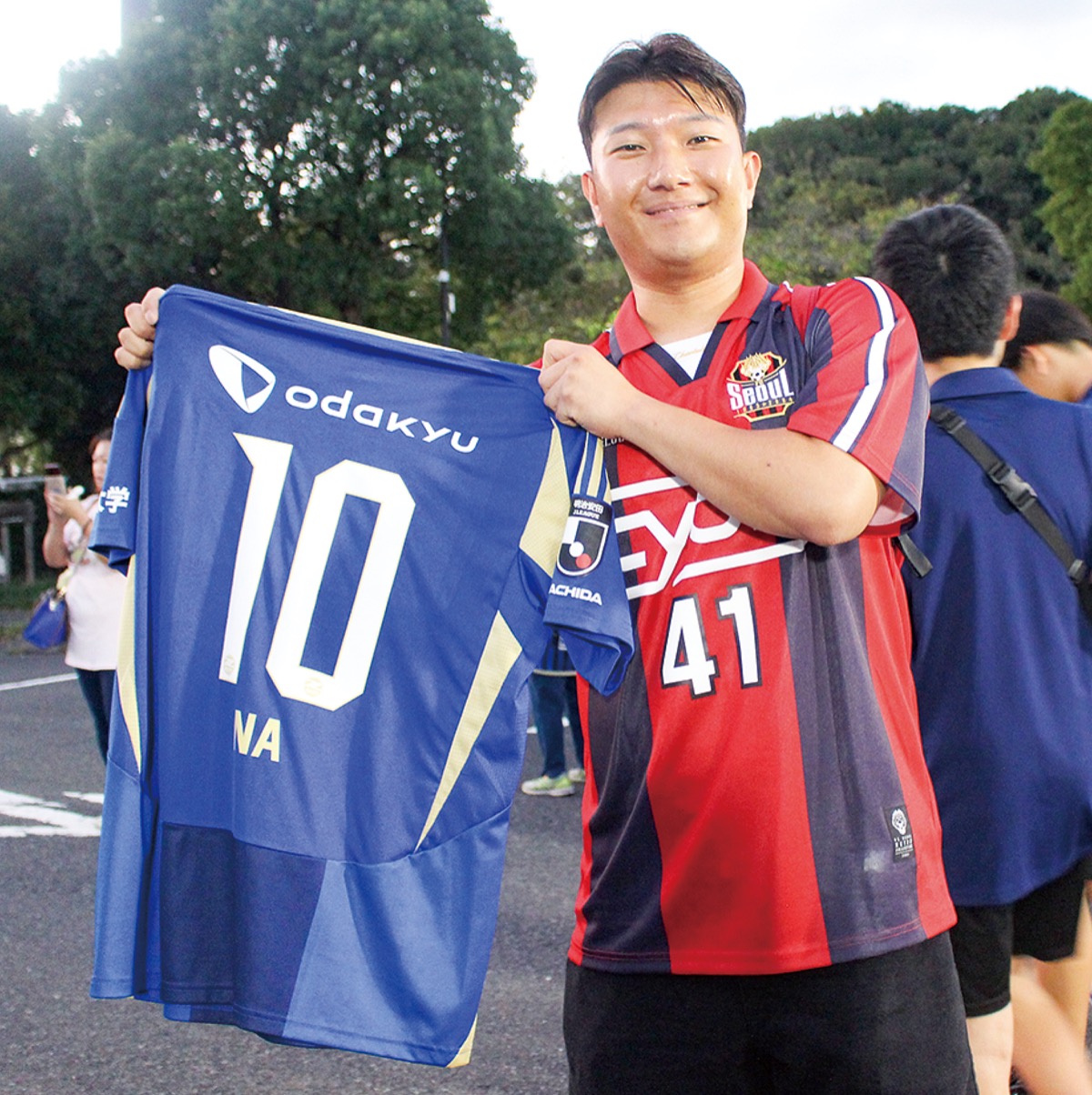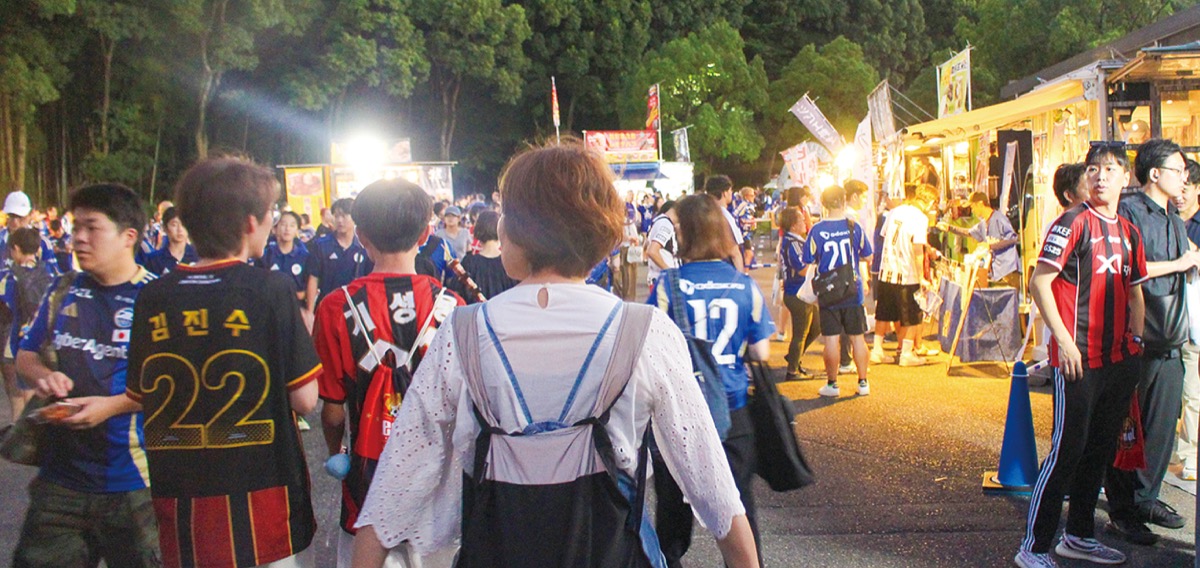 売店などが立ち並んだ試合前の会場には「アニョハセヨ」――の声が響き渡り、ゼルビアの紺色のものと共に赤いFCソウルのユニフォームを着たサポーターの姿がみられた。ソウルの応援のため、韓国からかけつけたというユーチューバーの男性はゼルビアサポーターと交流。エールを交換し、ゼルビアに所属する韓国人FW、ナサンホ選手の「応援もしたい」とその10番のユニフォームを掲げた。