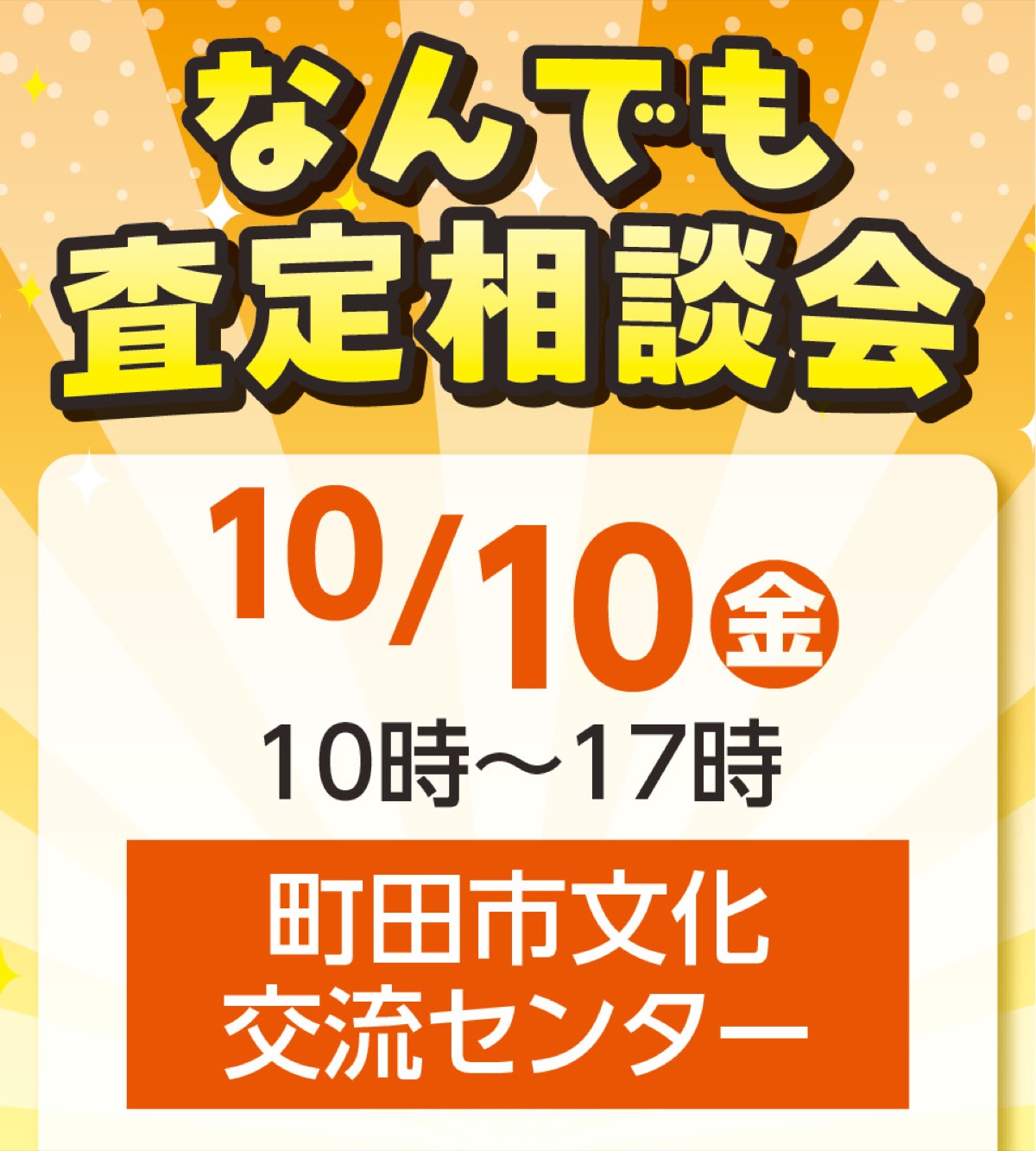 10月10日(金)、町田市文化交流センター内会議室サルビア(JR横浜線「町田駅」町田ターミナル口直結・小田急線「町田駅」西口から徒歩5分)で「なんでも出張査定会」を開催する。
