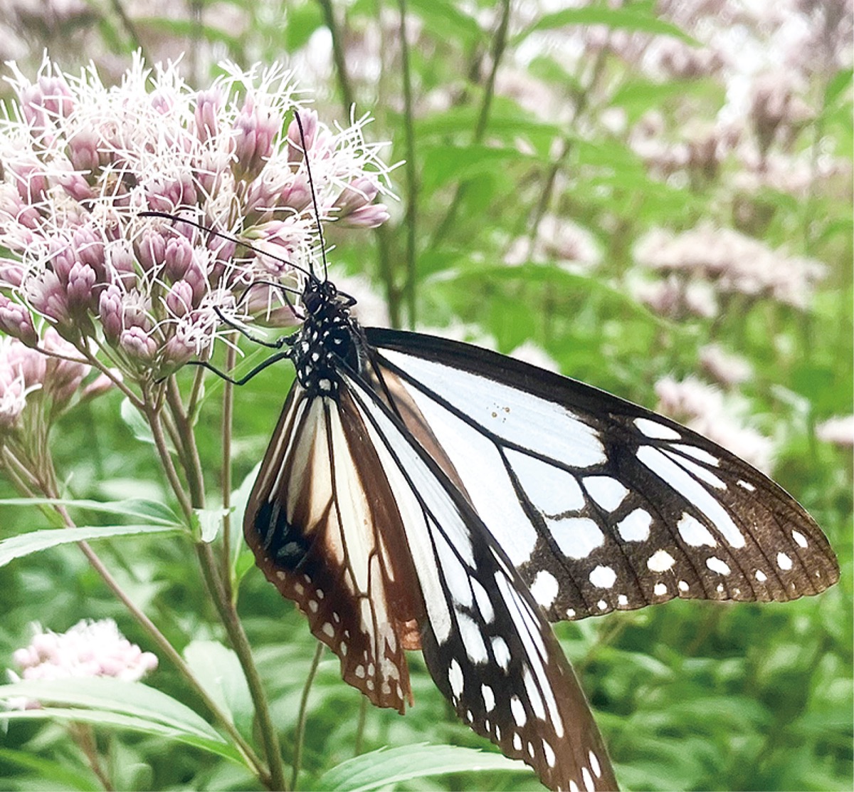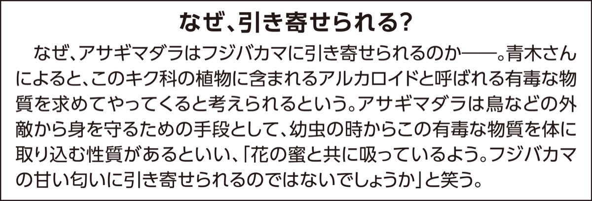 青木さんは「旅するチョウに興味を抱いたところ、町田市内のフジバカマがある場所にアサギマダラがやってきたことを知り、自分の畑にも植えてみた。2年前は花の数が少なく、来てくれなかったが、昨年飛来してくれた時は感激した」と笑顔をみせる。