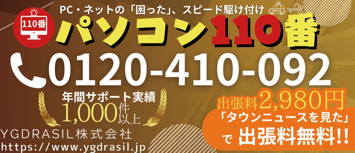 Windows10のサポートが10月14日に終了した。アップグレードをせずに使用し続けるとセキュリティリスクが高まる。その対応はもちろん、パソコンやWiFiの不調、メールの操作方法などの困りごとを丸ごとスピーディーに、即日対応してくれるのが「パソコン110番」だ。