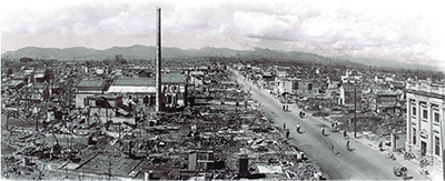 8月1日、母親はあるだけの米を炊き大量のおにぎりを作った。そして乳母車を押し、横川町へ逃げた。桑畑の中に布団を敷き隠れていた。恐ろしかったが、こっそり見てみた。「切れ目のない花火のよう」。キレイで驚いた。3日後、実家のある八日町へ。陣馬街道を歩く途中、追分町の交差点から先は何もなくなっていた。自宅もなくなっていた。