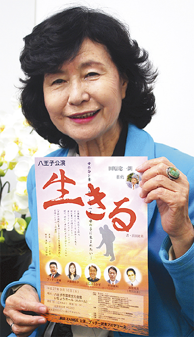 公演の協力・協賛をする株式会社クレア(旭町)の町田典子会長=写真=は昨年9月、都内でこの劇を鑑賞。その内容に感銘し、八王子での公演を知人である俳優の浜田光夫さんを通して劇団に打診した。町田会長は「若い人も今から老後について心の準備をしておいた方がいい。一人ひとり、劇の感想は違うと思う。それぞれが考えるきっかけになれば」と話した。チケットは全席自由6000円。問い合わせは主催のBMCエンタープライズ(株)【電話】03・6903・7895へ。