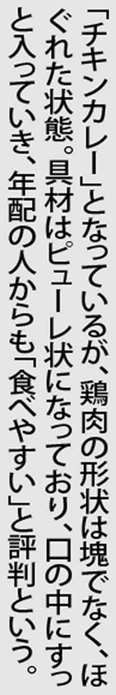 「夏はケーキのテイクアウトが売れにくい。何か売上を補うものはないか」。渡辺さんは十数年前、店舗のまかないメニュー「カレー」に目を付け、スタッフから評判の味の商品化をめざした。カレーのレシピと言えば一般的に「たまねぎを炒める」ことから始まるが、渡辺さんは「たまねぎの芯がなくなるまで」煮込み、スープを作り、それをカレー味にしていく方法を採用した。「脂はできるだけすくい取るので、食べてもお腹が重くならない」(渡辺さん)。とろみは小麦粉などでなく、野菜が溶けた繊維で。そしてカレーの隠し味にはチョコレート(仏(フランス)産の高級品)が入っている。