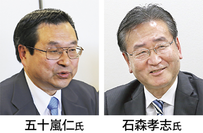 任期満了に伴う八王子市長選挙(1月17日告示、24日投開票)で、出馬予定の現職の石森孝志(たかゆき)氏と新人の五十嵐仁(じん)氏の2人が2015年12月18日、八王子記者クラブで会見を行った=記事は12月20日時点。