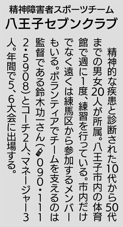 精神障害者の社会復帰を目的に活動するソフトバレーボールチーム「八王子セブンクラブ」。代表の鈴木功一さん(川口町)がチームを立ち上げて10年目。チームは全国大会の常連で、1月の都障害者スポーツ大会は7連続の優勝を決めた。3月20日(日)には市内で初の主催大会を開催する。「スポーツを通じて自分に自信を持てるようになる。自立への道にもなるはず」と鈴木さんは活動の趣旨を話す。