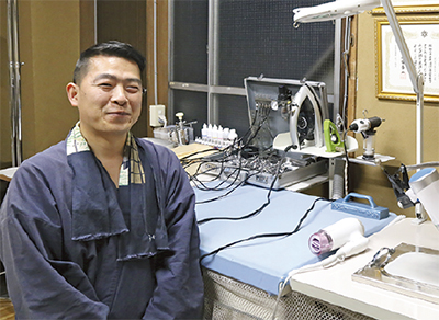傷んだ着物の修繕など、着物にまつわる全てのことを任される悉皆(しっかい)師。「きものにしわ」(八幡町)には都内でも珍しく店専属の悉皆師がいる。橋浦悠さんだ。