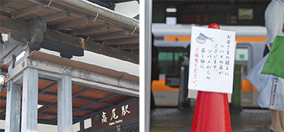 巣の場所は人の往来が多い正面階段の上。が、幸い手すりの上にあり、手すりが妨げとなり人が巣の真下を歩いたりすることは少ない。駅ではコーンを設置し、「糞の落下」に注意を促している。「衛生上、気を使いますが『福を呼ぶ』ともいうので良いのでは。生き物ですし」と駅員は話す。ツバメの観察を続ける駅周辺の住民は「高尾駅は木造で大き過ぎないから行き交う人の顔がよく見える。駅員さんも売店の方も優しい。人が優しい気持ちになれる駅だからツバメがよく似合う」と話す。駅では巣立つまで子育てを温かく見守っていく。*参考資料/公益財団法人日本野鳥の会「消えゆくツバメをまもろうキャンペーン」