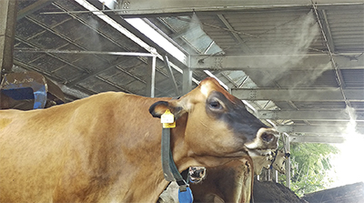 「磯沼ミルクファーム」(小比企町)は8月上旬、牛舎に霧状のミストで冷却するクーラーを導入した=写真=。同牧場は、生き物がより良く生きられる環境を整えることで、人と牛が幸せになれることをテーマとしており、その一環。クーラーによって牛のストレスをできるだけ減らして良質な牛乳を得ることが目的。牧場長の磯沼正徳さんによると「牛は寒さに強いが暑さに弱い。体温の上昇を防ぐためにエサをあまり食べなくなるし、お乳の出も悪くなる。猛暑に間に合ってよかった」とのこと。ミストによる気化熱によって2〜3度ほど温度が下がり、牧場のにおい軽減にも寄与しているという。