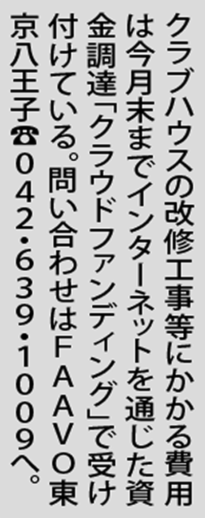 長い間放置されていたため、コートは雑草などが生い茂っていた。会員らが草刈りし現在はフットサルコートとして使用している。紙本さんは「クラブハウスというと『更衣室』のイメージがありますが、そうでなく海外にあるような『市民の社交場』にしたい」と意気込んでいる。