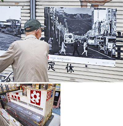 甲州街道沿いの八幡町交差点から本郷横丁交差点までにある約80店舗に約100点を貼っている。内容は大正時代から昭和40年代頃までの八王子の街並みなど。写真は高倉町在住の浜中義孝さん、八王子市郷土資料館から提供を受けた。