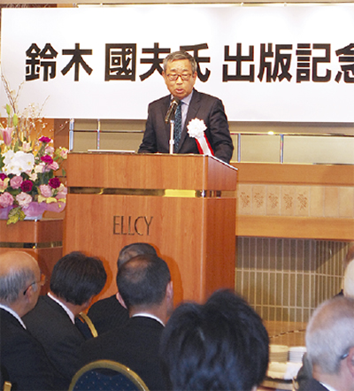 ファミリーレンタリース株式会社(八日町)の代表取締役会長兼社長、鈴木國夫氏による初の著作『手堅く・長期的な利益を得る コインランドリービジネス新常識』(幻冬舎メディアコンサルティング)の出版を記念した祝賀会が3月24日、八王子エルシィで開かれた。