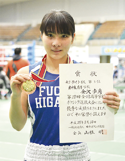 大和田町在住の金沢歩南さん(高3)が先月、岐阜県で行われた「全国高等学校ボクシング選抜大会」(女子ライト級)で3位になった。