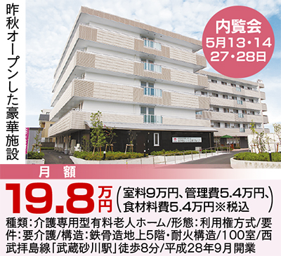 昨年オープンした介護付き有料老人ホーム「エクセレント立川プレミア」。豪華な内装と清潔感が嬉しい新施設が5月13日(土)、14日(日)、27日(土)、28日(日)に春の内覧会を行う。