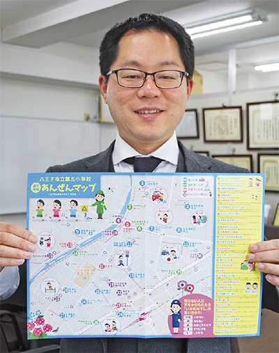 八王子市立第五小学校PTA(山本法史会長)が通学地域の「あんぜんマップ」を作成した。「車に注意」「なるべくひとりで通らない」など、同校(千人町)に通う際気を付けた方がいい28カ所を地域の地図に落とし込んだ。3月に完成し600部を印刷。5月から在校生の各世帯に配布した。山本会長は「地域の『危ない』を共有できれば」と期待する。
