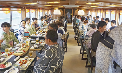 今年同店で浴衣を購入した人に参加を募った。当日はスタッフあわせ50人ほどが集まった。天王洲を出発し約2時間半の東京湾クルーズを楽しんだ。