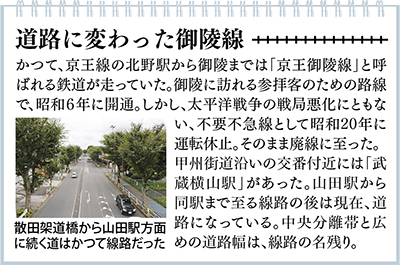 散田架道橋付近のけやき通りは、昭和42年ごろには「散田銀座」と呼ばれるほどににぎわっていたという。けやき通りが区画整理によって広がってから、沿道には次々と商店が出来ていった。ナカオ電化センター(散田町4)の中尾英敏さんは、中散田商店会の最後の会長を務めた。「当時、めじろ台の住宅街が造成されると聞いて、有志を募って商店会を作ったんだよ」。商店街の中でも、けやき通り沿いが通称「散田銀座」と呼ばれていたそうだ。「肉屋から八百屋まで20軒以上、日常生活には事欠かないくらいの商店街だった。夕方は買い物客でごった返していたよ」。それが世代交代などによって、店舗が減っていくと、客足も遠のくように…。往時のような輝きを取り戻せる時代はくるのだろうか。最近、通り沿いには、賑わいの兆しも見える。「また、活気が戻ってくると嬉しいね」