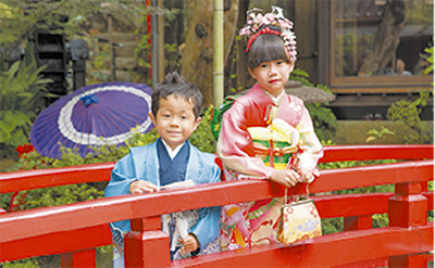 およそ100匹の鯉が池を彩る。その池にかかる赤い橋は絶好の撮影スポット。七五三の時期ともなると江戸情緒あふれるこの庭は、晴れ着の子どもたちの記念撮影で賑やかになる――。
