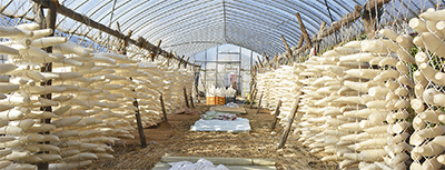 その流通を後押ししたのが、八王子の産業の中心にあった織物業。工場で働く人たちの食事のおかずとして沢庵が多く必要とされたことから、その原材料となる高倉ダイコンの需要が高まったと言われている。出荷前にダイコンを干す(すだれ干し)風景は八王子の冬の風物詩とされ、市内の象徴的な景色をまとめた「八王子八十八景」の一つに数えられる。「このダイコンだと、通常のものよりも柔らかくて美味しい沢庵ができるんだよ」と、現在唯一の生産者である立川さんは笑顔を見せる。