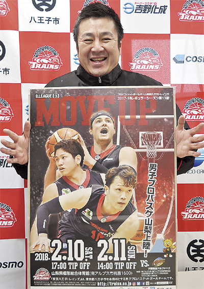 「十日市(とおかいち)(地元の祭典)もあるので、ぜひこの機会に山梨へこーしー(来てね)」。そう呼びかけるのは山梨県南アルプス市出身でプロバスケ「東京八王子トレインズ」(子安町)スタッフの沢登敏也さん。県人会の会員でもある。