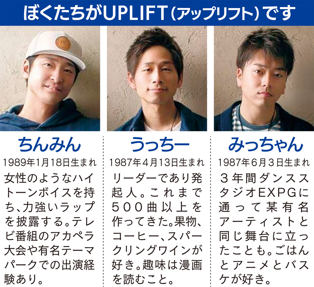3人ともそれまでの仕事を辞めて音楽に専念し始めた今年は勝負をかける。八王子FM(77・5MHz)で7月から毎週金曜日深夜24時に冠番組「UP LIFTの ありがとうと言わせて」をスタート。また7月19日(木)には三浦海岸で行われる音楽イベント「音霊(おとだま)」に出演する。