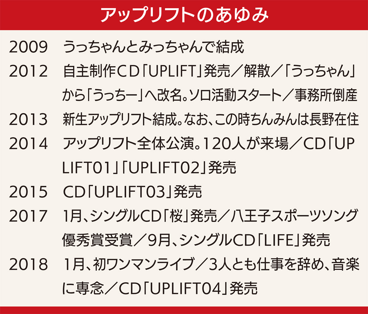 5周年を迎えた2018年、大きく動き始めたアップリフト。八王子アーティストの一組として、これからの活躍が楽しみだ。
