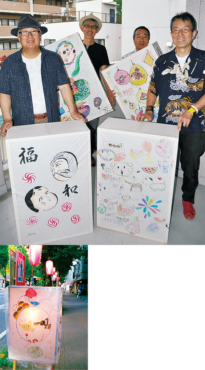 千人町1丁目町会(飯田功町会長)はまつり期間中、甲州街道沿いに絵灯篭を飾っている。今年は規模を拡大し「賑わい創出」に力を入れる。