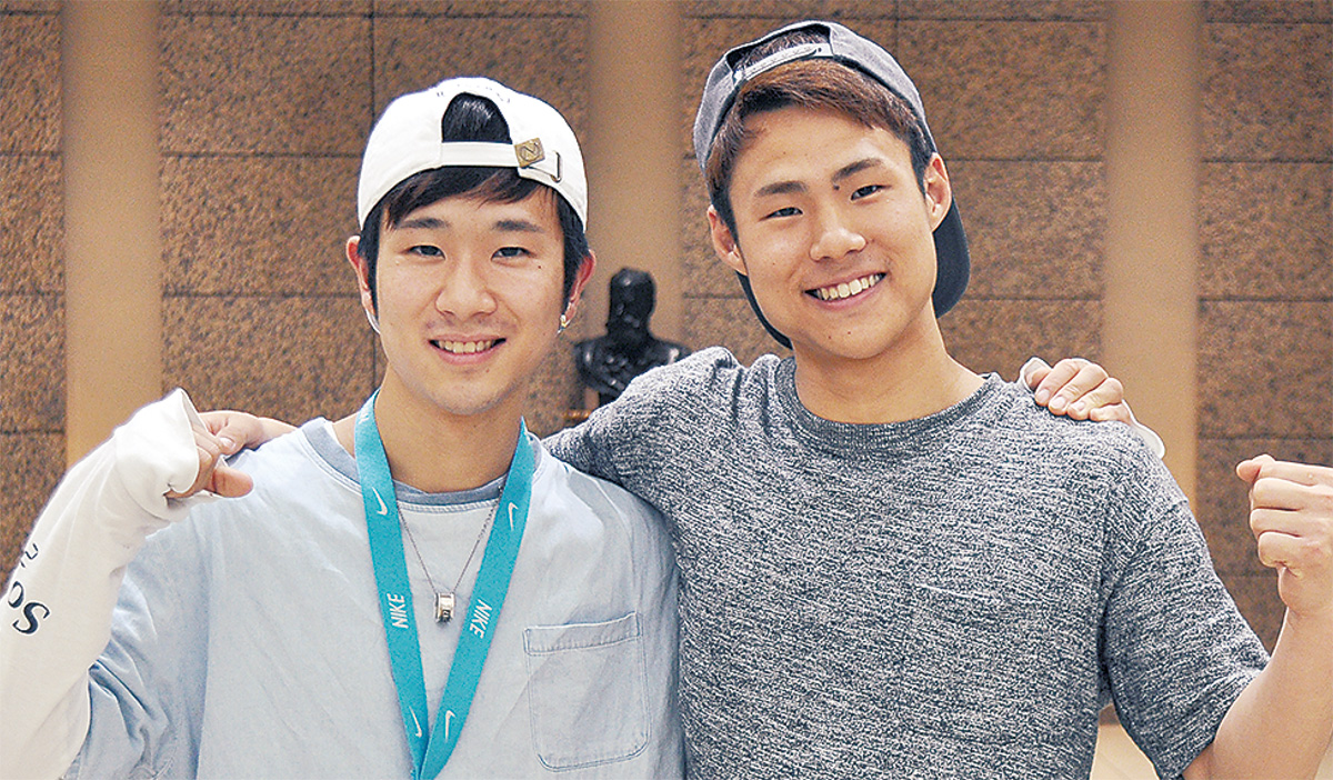 創価大学(丹木町)の松尾正樹さん(文学部3年)、尾本幸一さん(教育学部3年)がチアリーディングの世界大会で3年連続の金メダルに輝いた。6月下旬、キャンパスで取材に応じた。