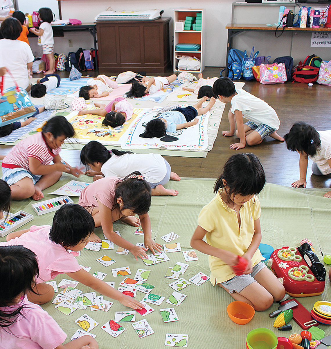 先ごろ、並木町の町会館で、いなりもり保育園(並木町)の”臨時学級”が開かれた=写真。同園の校舎が改修工事中のため夏休み前の数日間、地域の理解のうえ、町会館は子どもたちの学びの場となった。「地域の皆様のおかげです。感謝の気持ちでいっぱいです」と林清子園長。