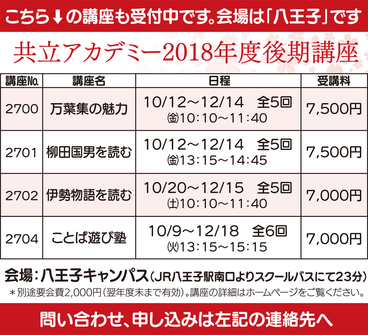申し込みはWEBまたはファックス、メールにて。応募先は下記。締切は10月15日(月)(先着順)。詳細は【電話】03・3512・9981へ。