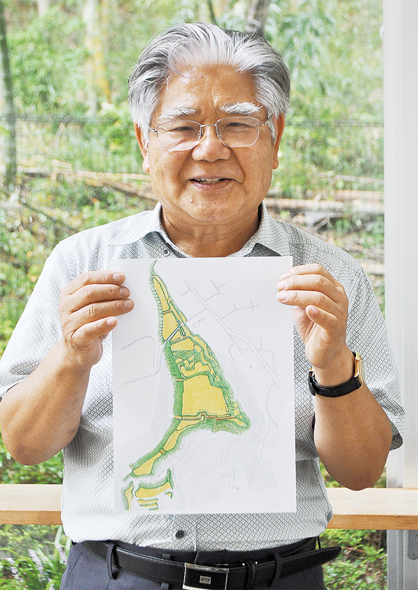 尾熊さんは丹木町の自宅前の道路が「滝山城下の軍事用の道だった」と知った15年ほど前から、滝山城跡について調べるようになった。