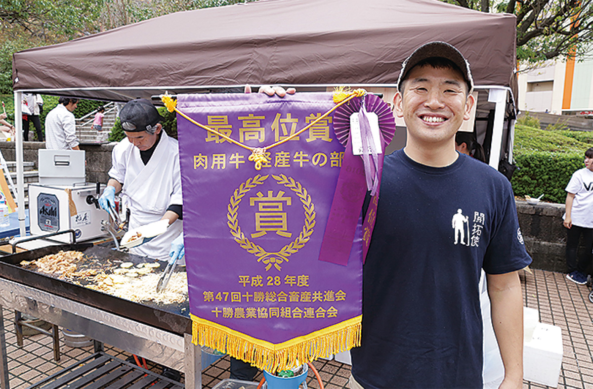 最終日の8日に、ひときわ長い行列が出来ていたのが「けいの家八王子本店」(明神町)。250食用意した「十勝和牛焼き八王子小比企野菜添え」は2時間で完売。急きょ豚トロ炒めを用意したものの再び完売。さらに豚キムチ炒めを追加して場をつないだという。店主の北澤秀彦さん=写真=は「十勝でも最高位賞をとった和牛なので味は間違いなし」と話した。他にも昼過ぎ頃には完売するブースがあり、イベントへの関心の高さを伺わせた。