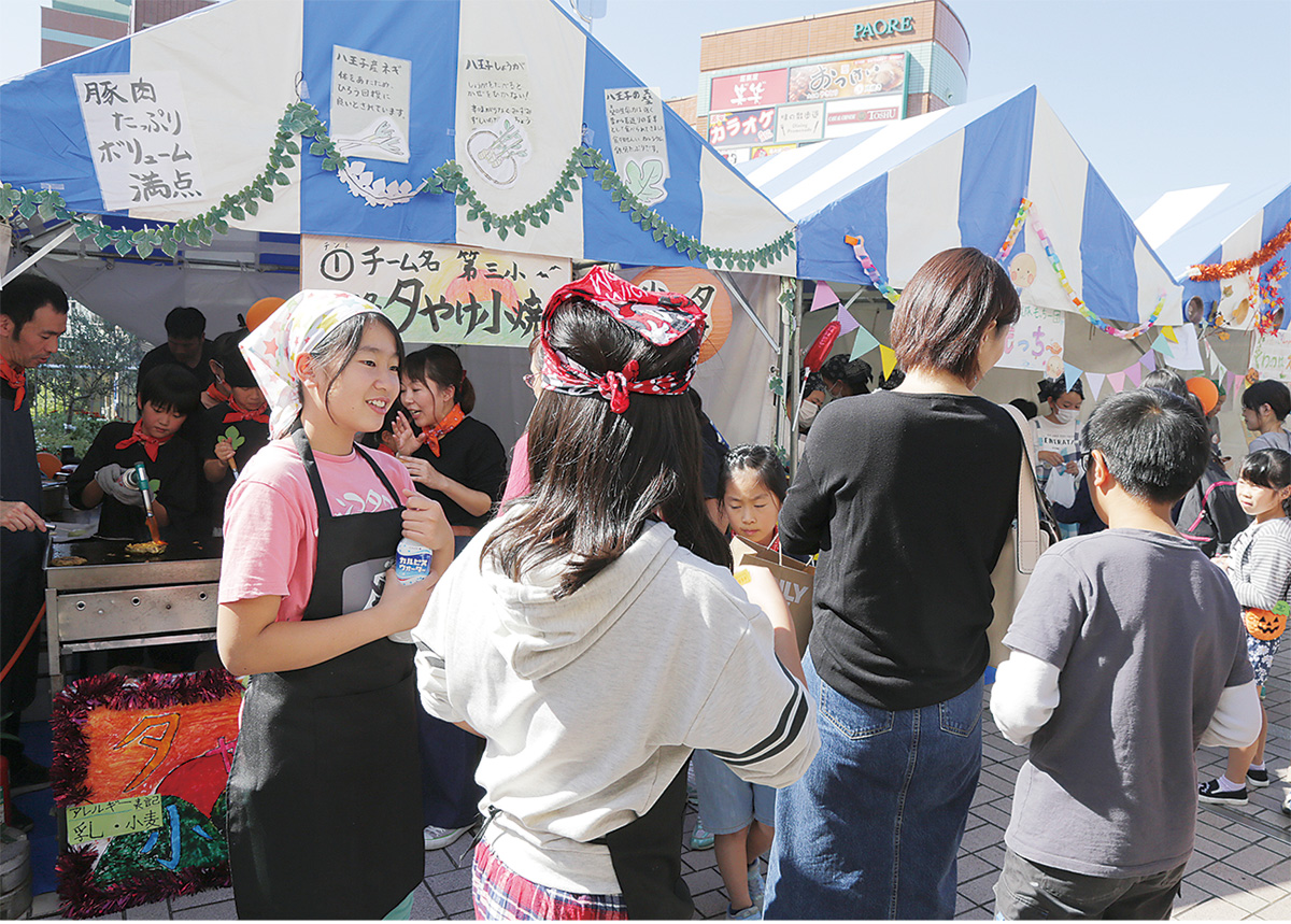 南大沢ペデストリアンデッキで10月21日、「八王子こども屋台選手権」が行われ、多くの人で賑わった。主催は八王子青年会議所(JC/青田一宏理事長)。