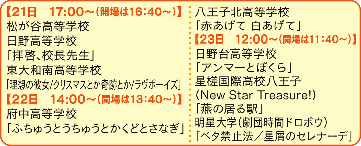 このイベント「八王子学生演劇祭」については同財団【電話】042・621・3005へ。