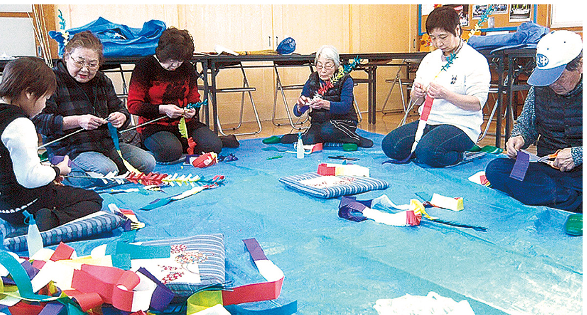 「割いて削った竹に青、黄、赤、白、紫、5色の紙を巻きつけて作ります」。上川町中部町会の高野誠三会長(71)は、やなぎについて説明する。同町会では例年、事前に地域住民が集まり色紙を貼り付け、やなぎを用意。1本に束ねて、どんど焼き当日に披露する。やなぎはどんど焼きが終わった後、自宅に持ち帰ることができる。丸めて屋根の上に投げると「火事除け」になると言われている。