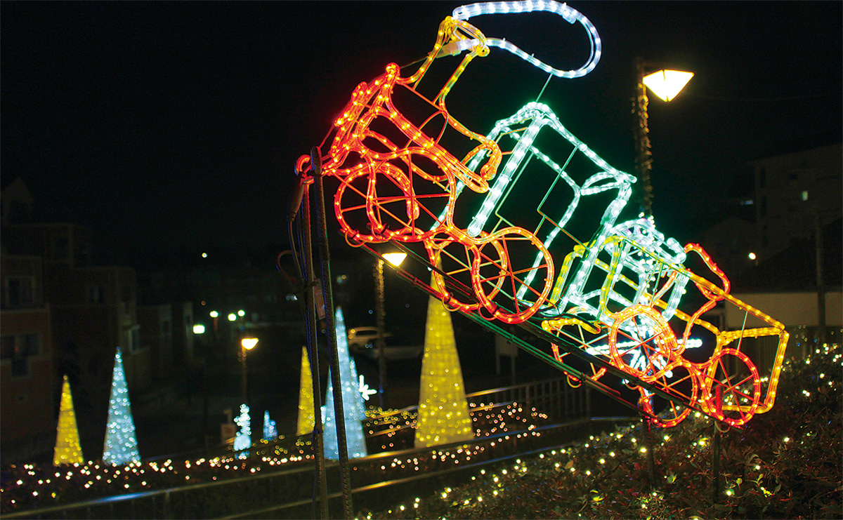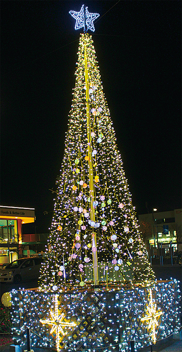 毎年冬期のみ、飾られているもので、同会店舗が並ぶ一帯と住宅街を結ぶ道沿い中心にゴールドやシルバーの光を放つツリーや、カラフルな汽車のイルミが買い物客や近隣住民などを楽しませている。