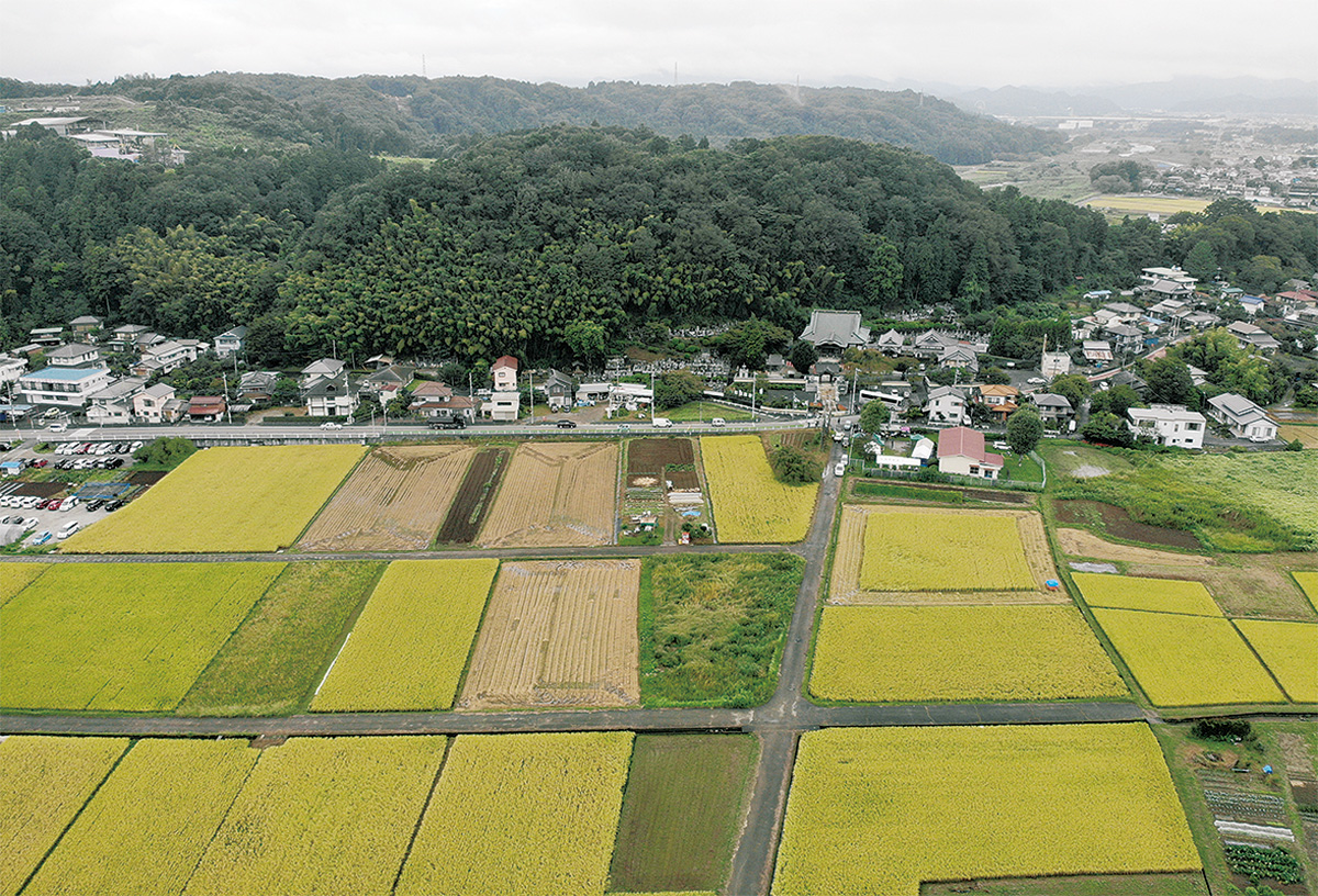 書籍の表紙写真は市役所の若手職員による自主研究グループ「無人飛行物体研究室」によるもの。高月城(山城)を中心とした加住地区を撮影した。高月城は写真中央にある山の右側。