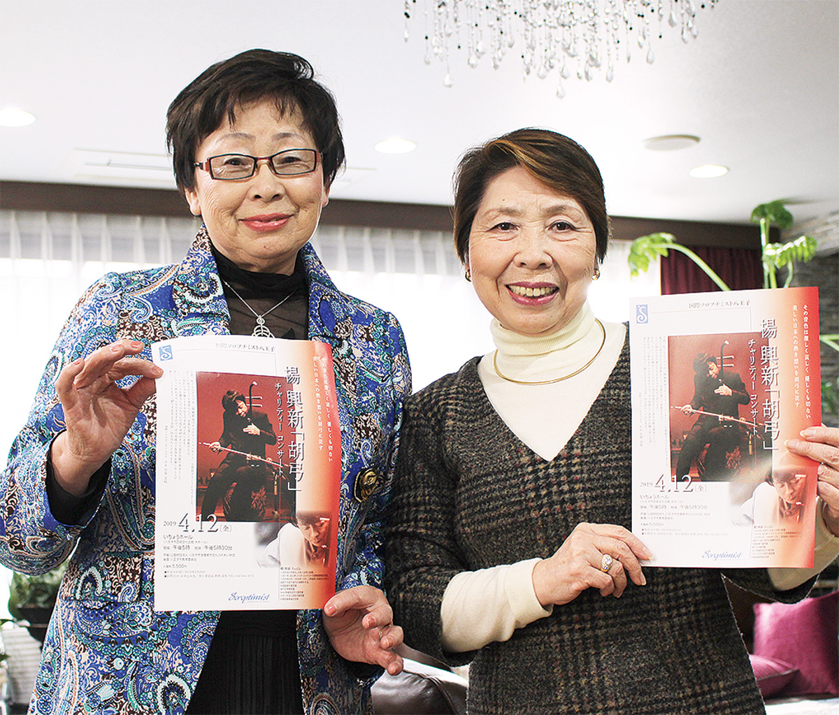 八王子市内の女性経営者の集まり「国際ソロプチミスト八王子」(小泉安枝会長)が4月12日(金)に開催するチャリティーコンサートの準備を進めている。同団体が出演依頼したのは、弓を操り弦から音色を出す胡弓(こきゅう)と呼ばれる楽器の第一人者である楊興新さん。一度その優しくて切ない音色を聞くと虜になる人は少なくないという。