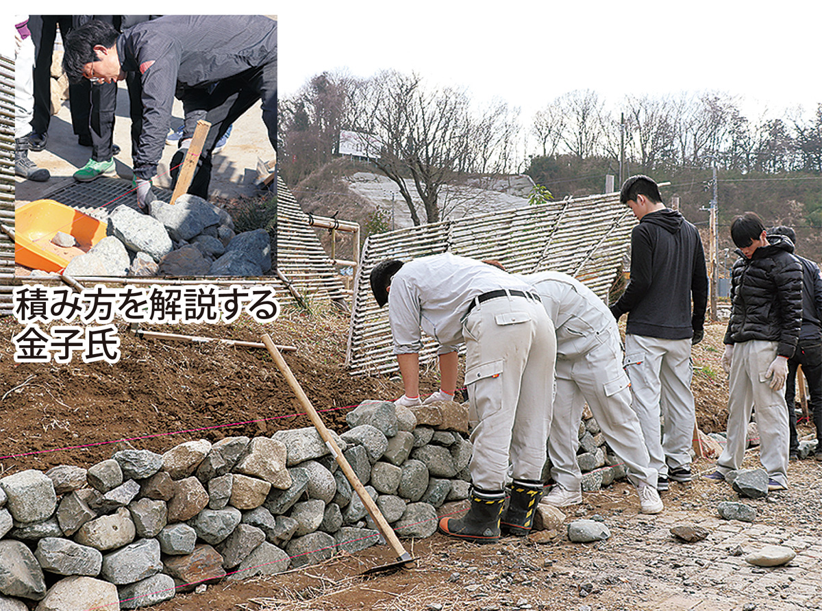 金子氏の話に耳を傾けていた同校の土木・造園科の学生の一人は「積み方だけでなく、低コストで済むことなど、この技術のメリットも聞くことができた」と感想を話し、同校教員の佐藤光宏さんは「学生たちが合理性や持続可能性に優れているこの技術を学ぶことができて良かった」としている。
