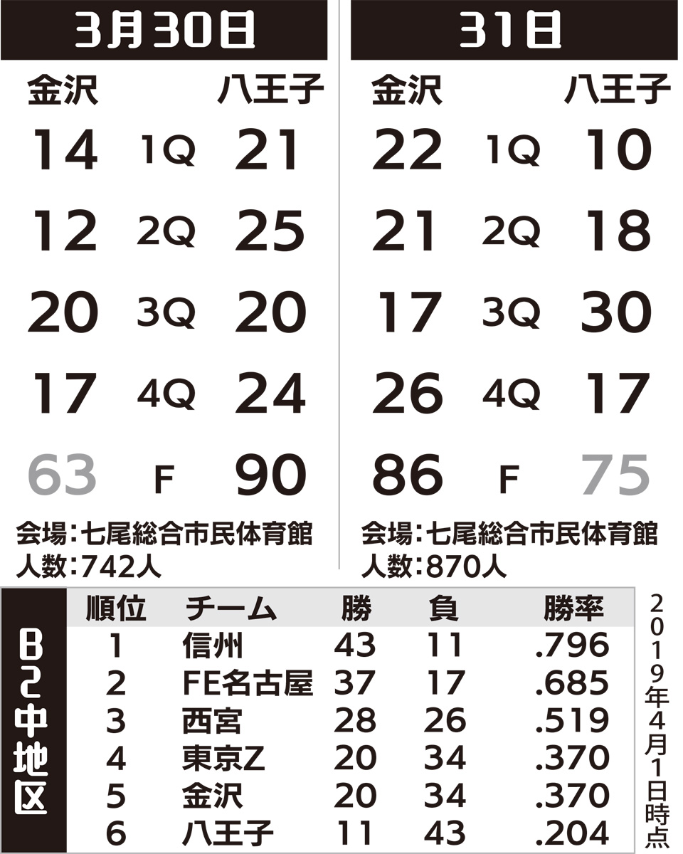 チームは3月30、31日、石川県で同じ中地区の金沢武士団と戦った。