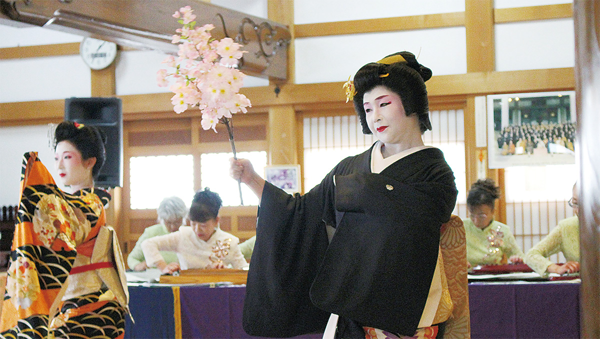 滝山町・少林寺で8日、仏さまの生誕を祝う行事「花まつり」に合わせたコンサートが開かれ、多くの地域住民らが集まった。コンサートには、中之島流大正琴(上恩方町)や日本舞踊・花柳流の小太郎さんらが出演。今回初めて、中之島流と花柳流の「コラボ」がみられるなど、大正琴のアンサンブルと舞いが来場者の耳目を楽しませた。